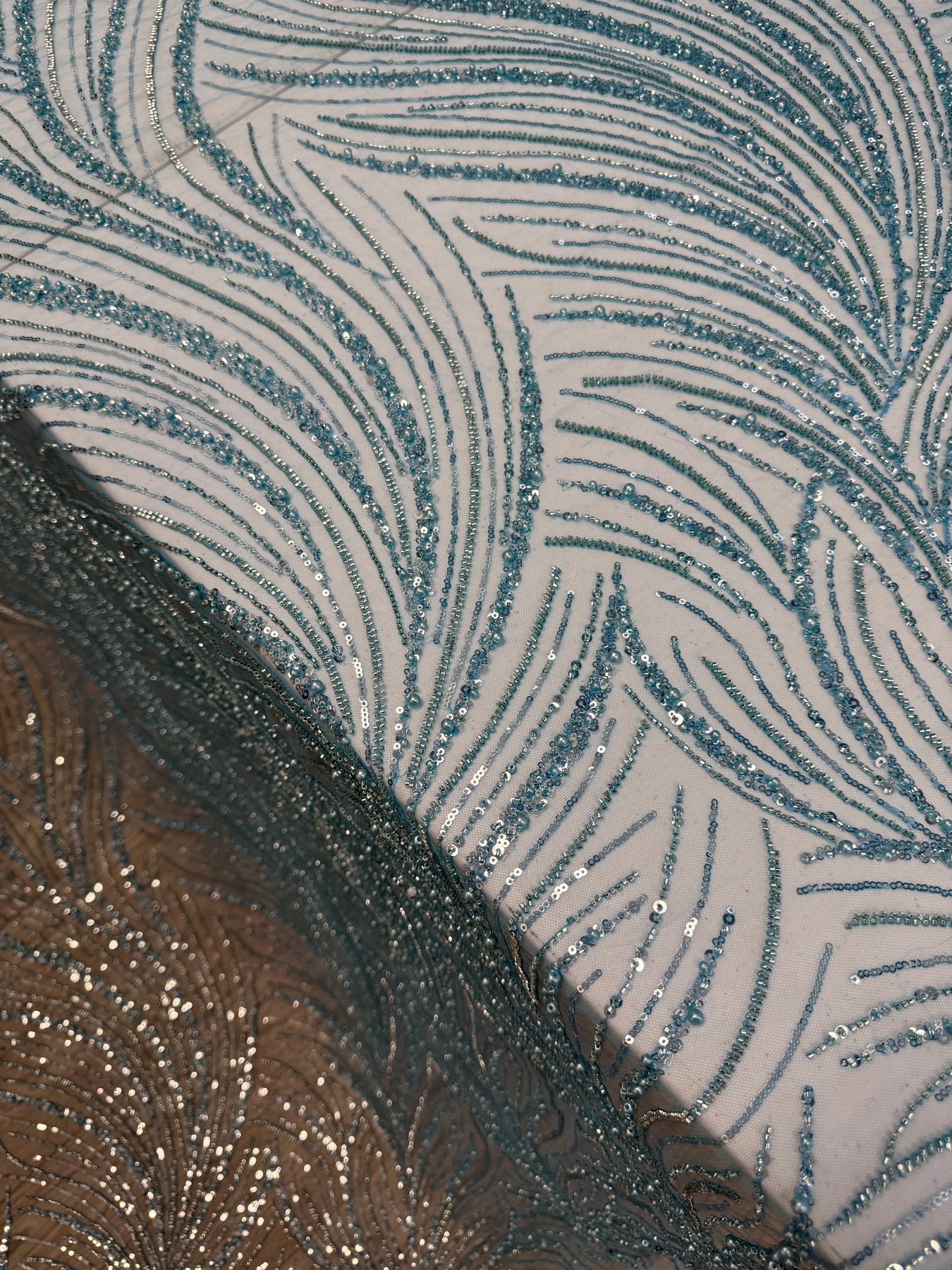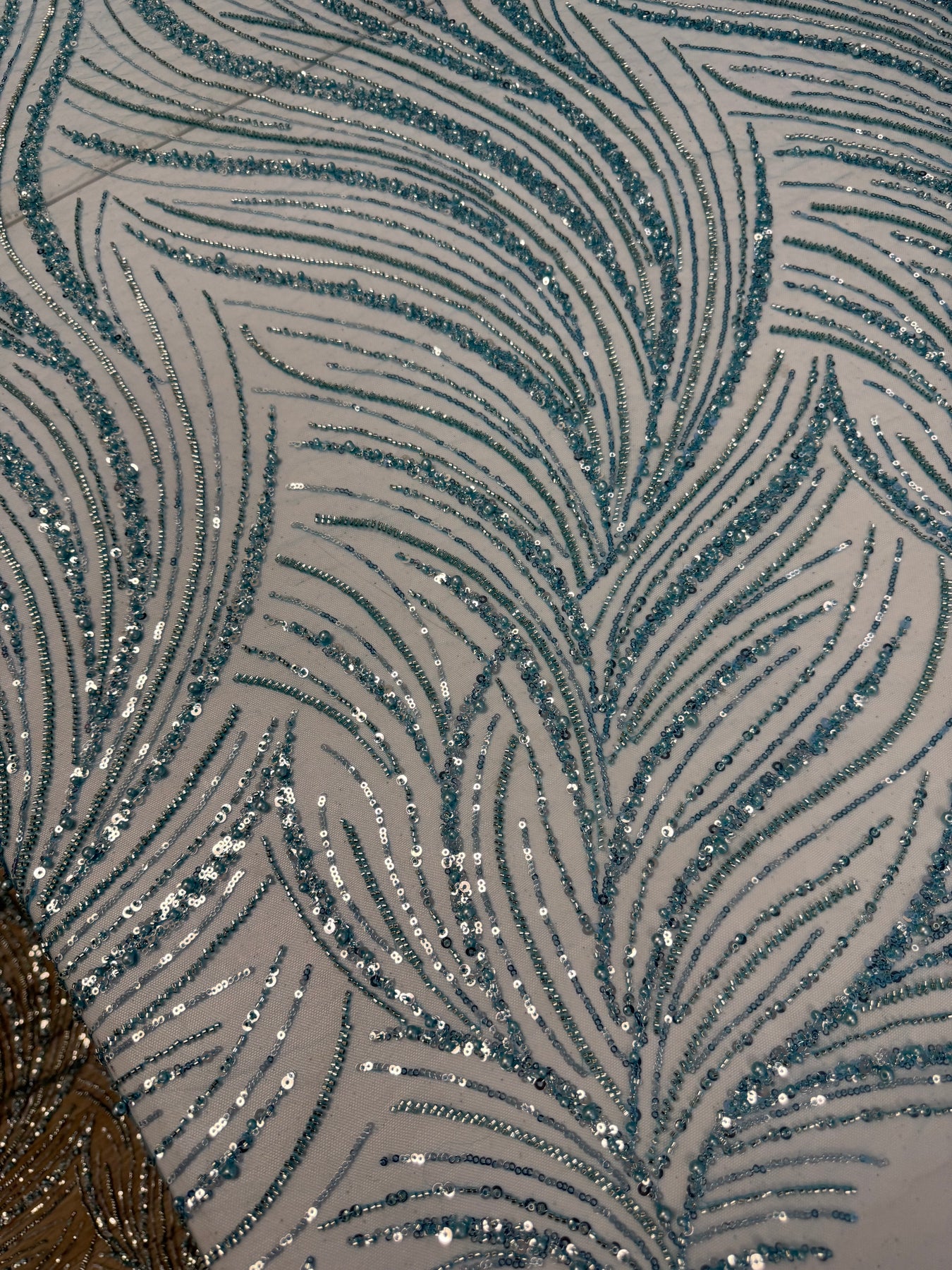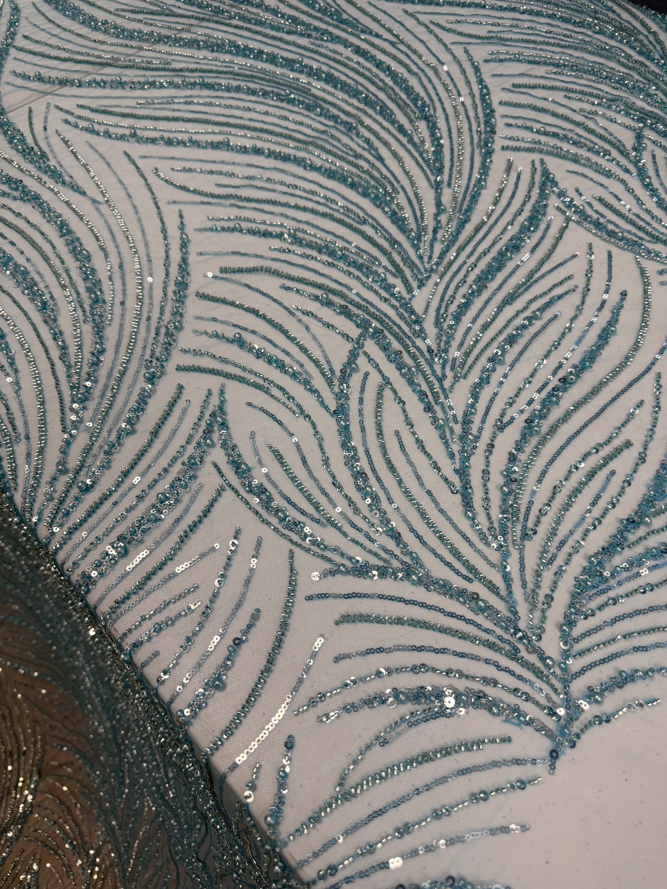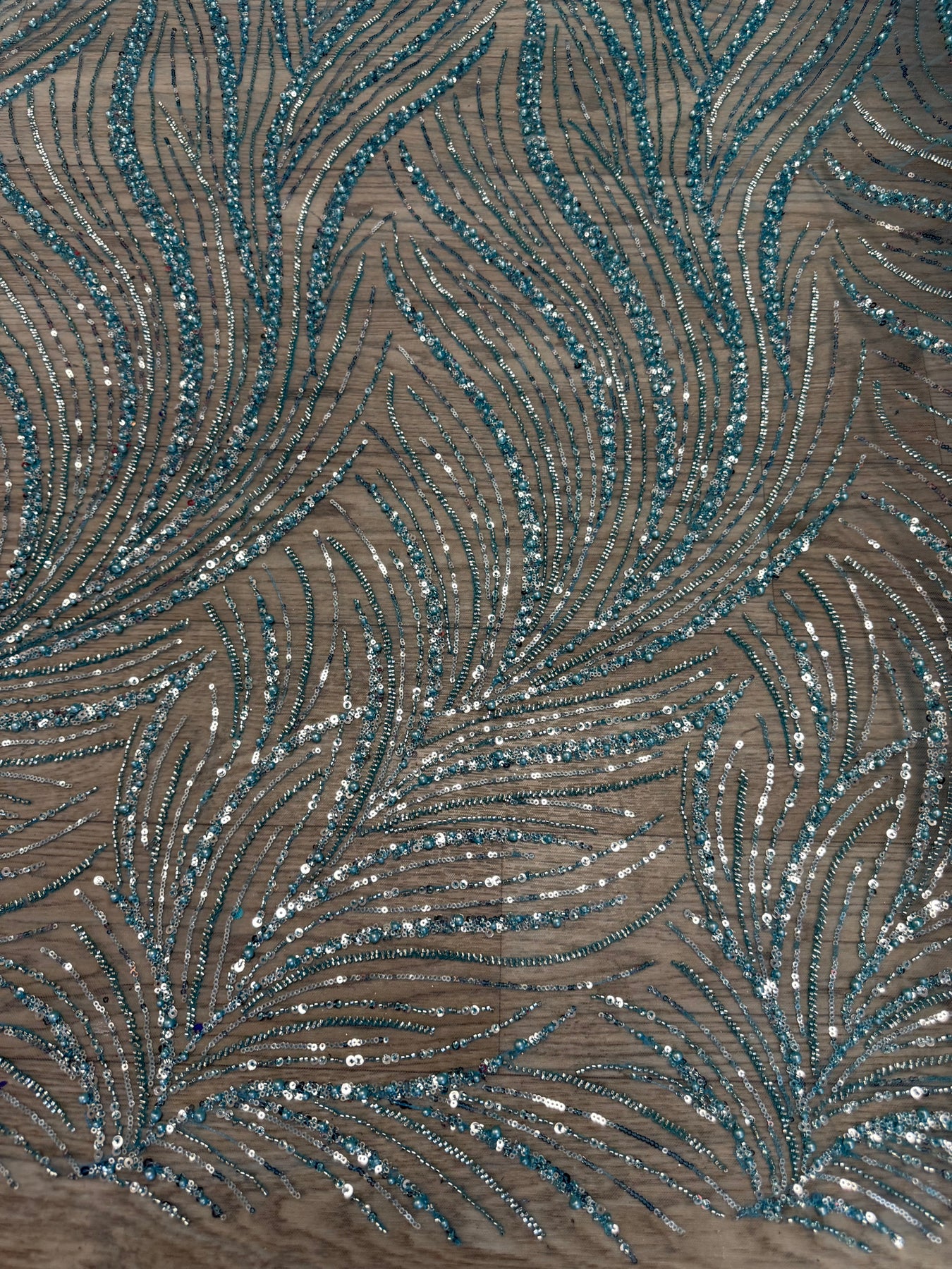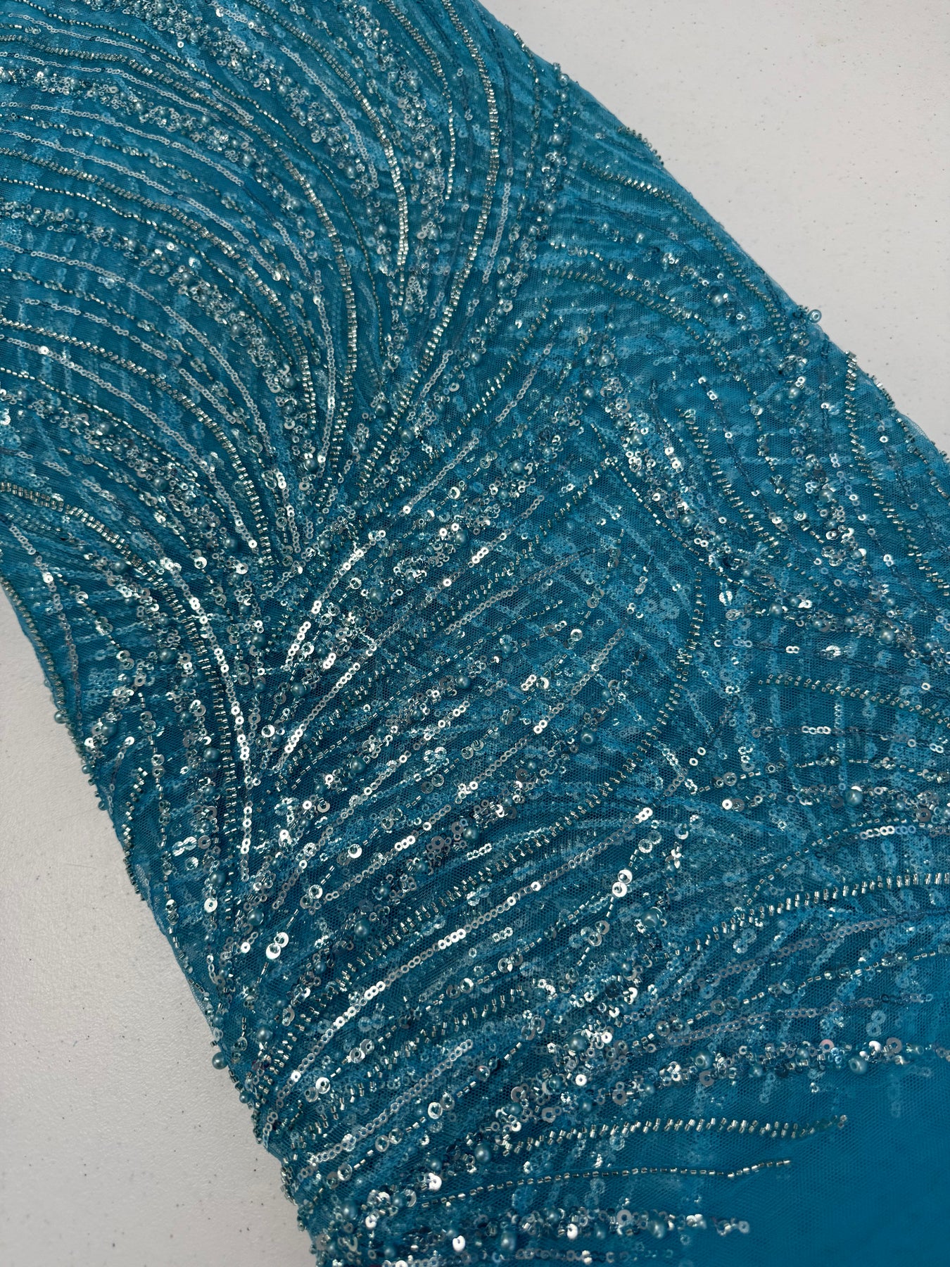 The sequin and beading on this design is so lush. The color is a breathtaking turquoise blue…YUM!